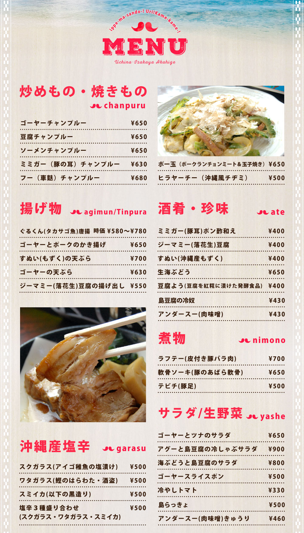 上記のメニューは税別表示となります。